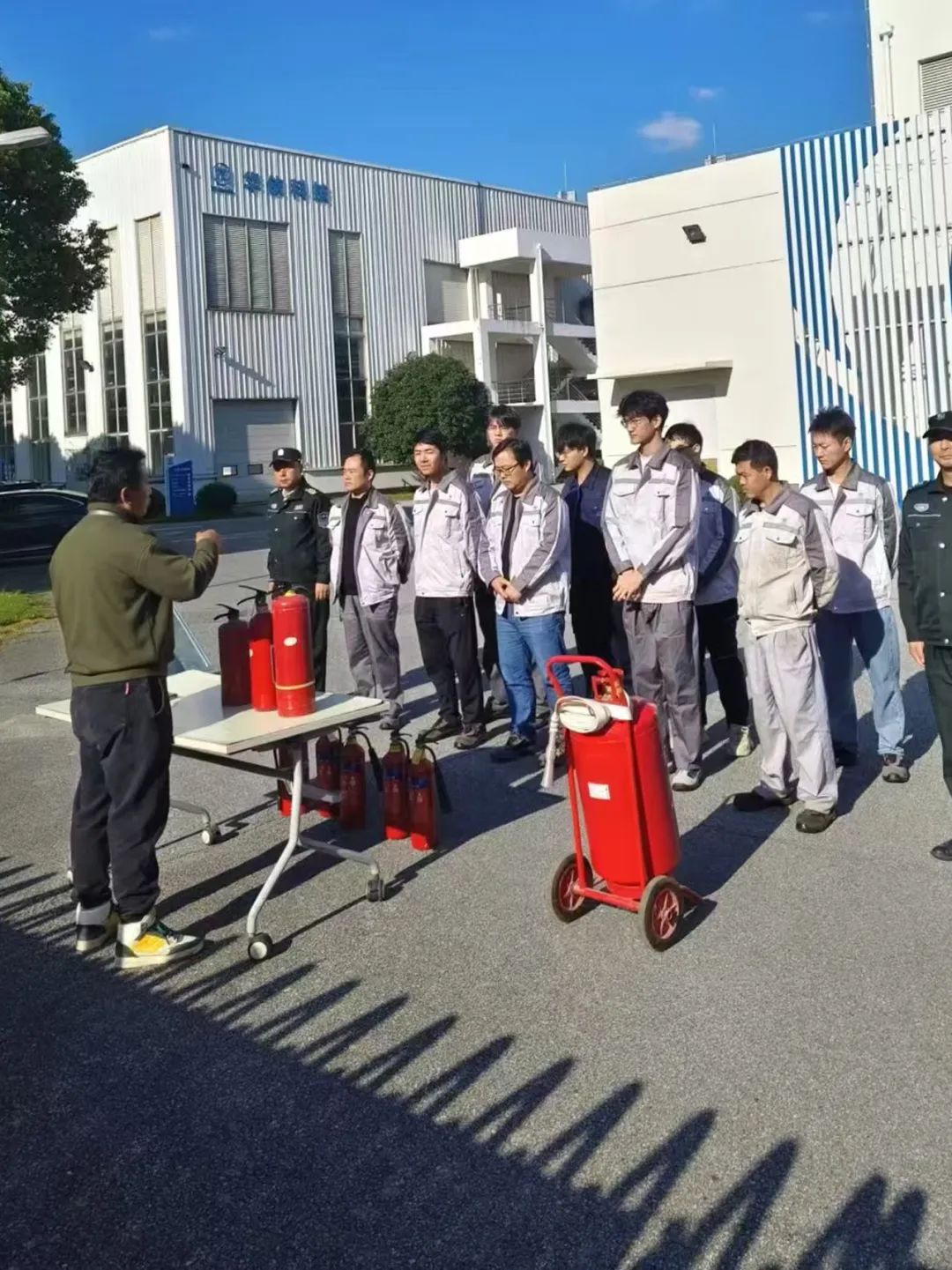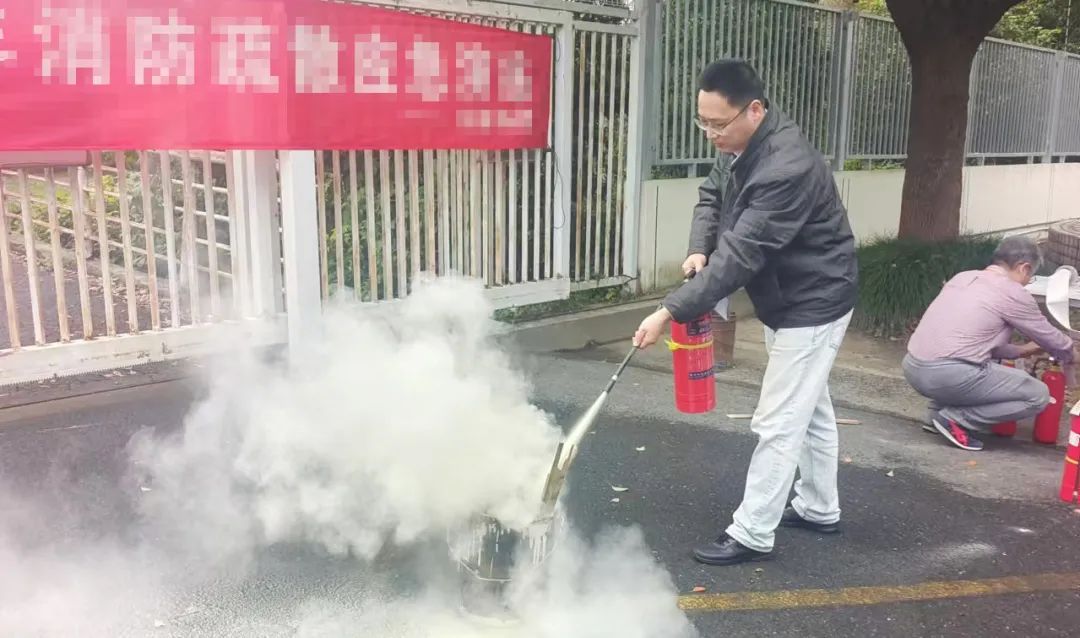 活动现场,安全员通过生动的现场讲解与实际操作演示,大家不仅熟记了“提、拔、握、压”的四步操作口诀,还亲身体验了灭火器的使用过程。从准确判断风向并站定上风口,到迅速拔掉安全插销、握紧把手、对准火源,再到稳稳地按下手柄,每一步操作都严格遵循规范,迅速有效地扑灭火焰。